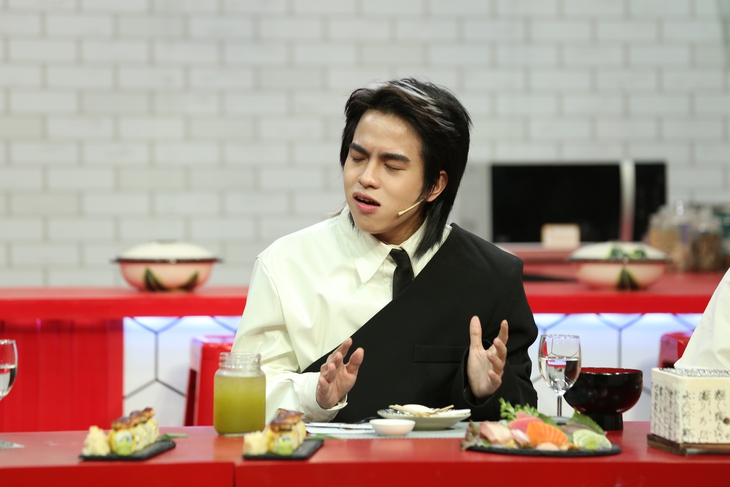 “Thánh review” mới nổi Ngô Đình Nam tiếp tục trổ tài “phán”: “Em thì cảm giác như kiểu ‘Lươn ơi lươn ở lại’ ấy”. Vừa dứt lời, Dương Vũ, Quốc Khánh và Chen Ru Lu đang ăn cũng phải bật cười nắc nẻ.