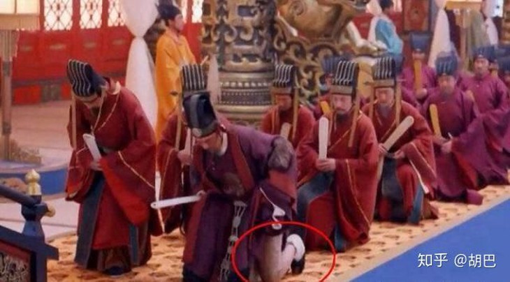 Vì vậy, đoàn phim rất cẩn thận, nhưng không bao giờ đề phòng chính các diễn viên. Không sai, thừa tướng đang buổi thượng triều đã trực tiếp vén y phục lên để tiện cho quỳ gối. Kết quả có lẽ là do thời tiết nóng bức, thừa tướng này không mặc quần dài bên trong nên lộ ra cặp đùi trắng nõn.