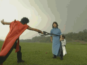 Thật là “ảo diệu” khi thanh kiếm đâm vào người có thể di chuyển từ phía bụng lên phía ngực của nữ diễn viên. Ngoài ra, bị đâm như thế trên người lại chẳng chảy miếng “siro” nào thì quả thật là cao thủ của cao thủ.