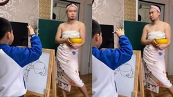 Ông bố cười không ngậm được miệng khi cầm bức vẽ của con - tái hiện ảnh cưới bố mẹ nhưng chẳng giống ai.