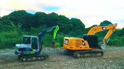 Cười sảng với hai tài xế lái máy xúc đùa giỡn nhau