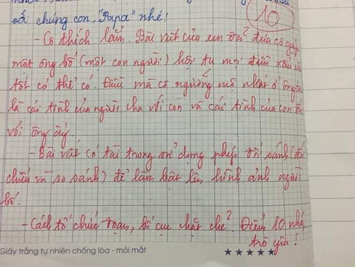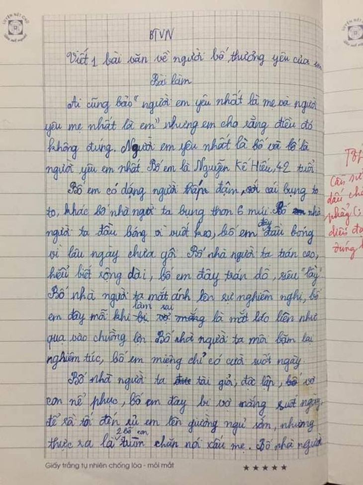'Cười xỉu' với bài văn tả bố bụng to, trán dô, bị vợ mắng suốt ngày