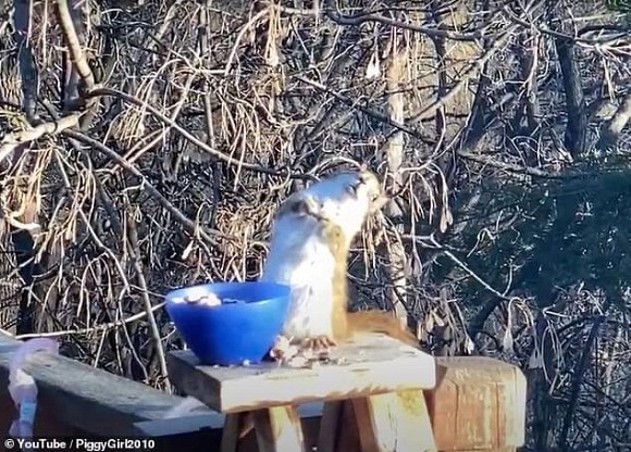 Một lúc sau, chú sóc nghiêng ngả người hết bên này đến bên khác và chật vật một lúc sau khi vịn được chiếc bát mới có thể đứng thẳng được. Sau đó lại ngả người về phía sau cùng gương mặt “ơ chuyện gì đã xảy ra thế này".