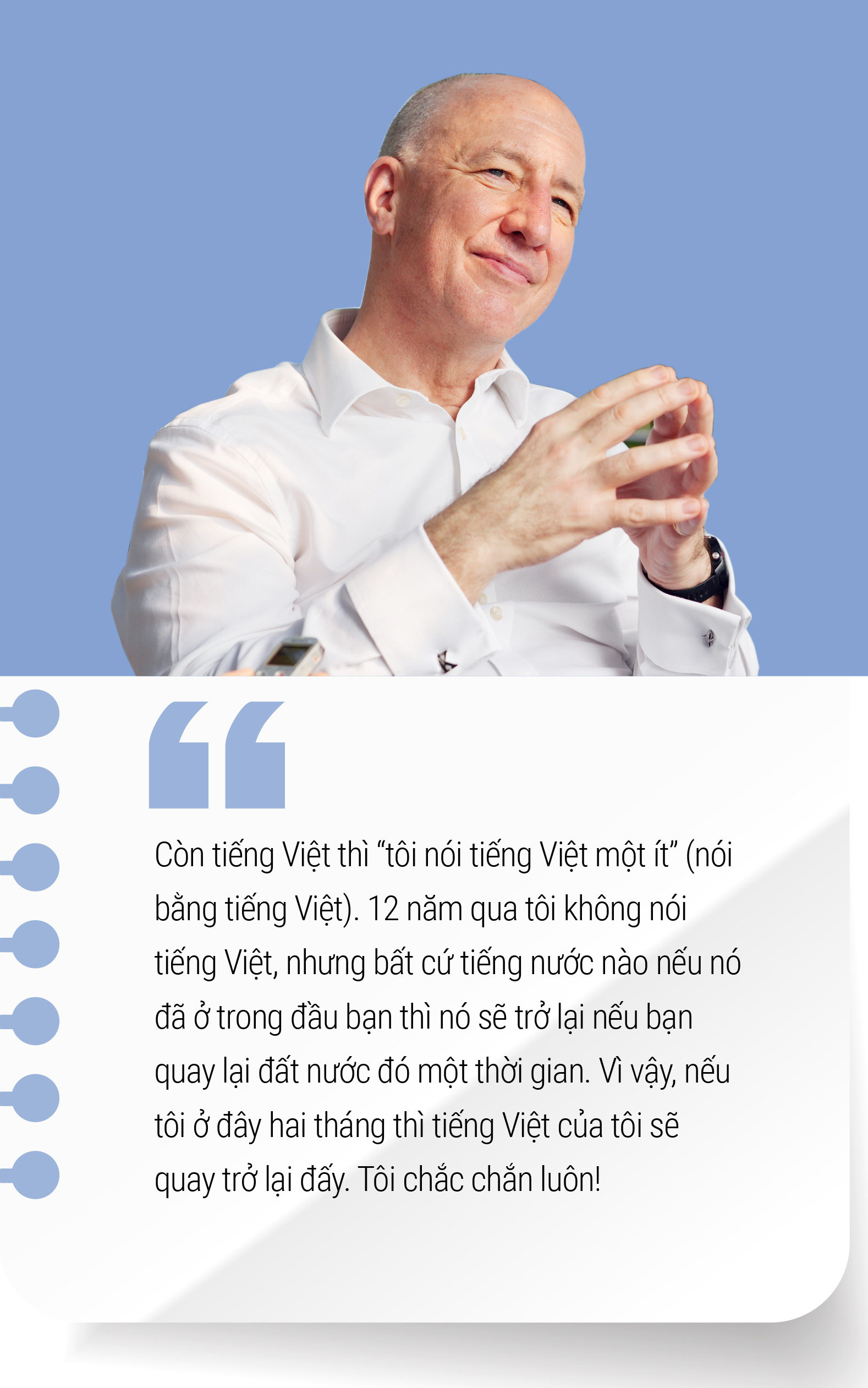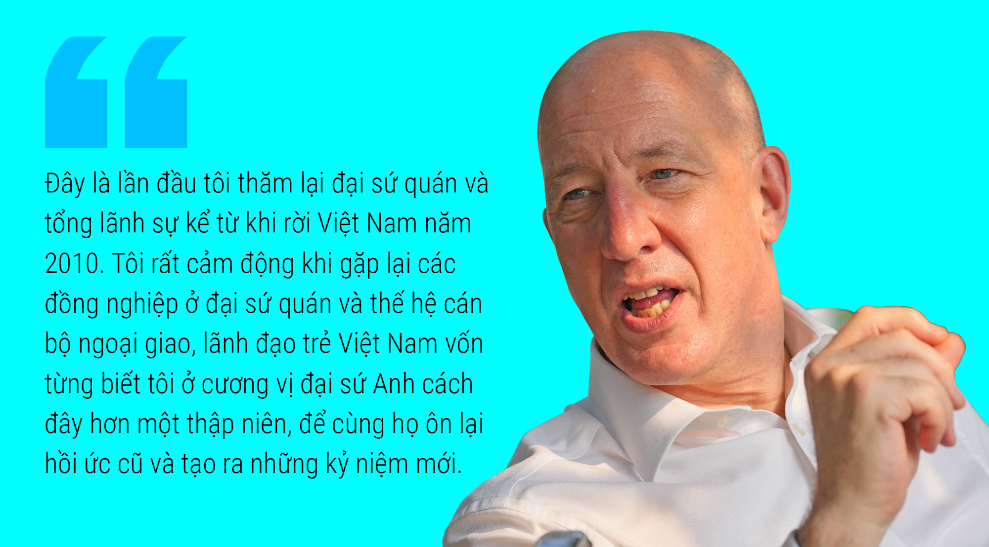 Trở lại Việt Nam sau 10 năm, ông thăm lại Hà Nội và TP.HCM với một lịch trình bận rộn và sôi nổi để kỷ niệm 50 năm thiết lập quan hệ ngoại giao Anh - Việt, gặp lại những người từng quen biết từ 12 năm trước, những người đồng cấp và đồng nghiệp, bạn bè ngoài khu vực ngoại giao, cả những người một thời hay cùng ông đi… uống bia hơi.
