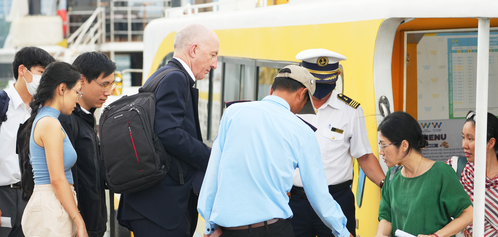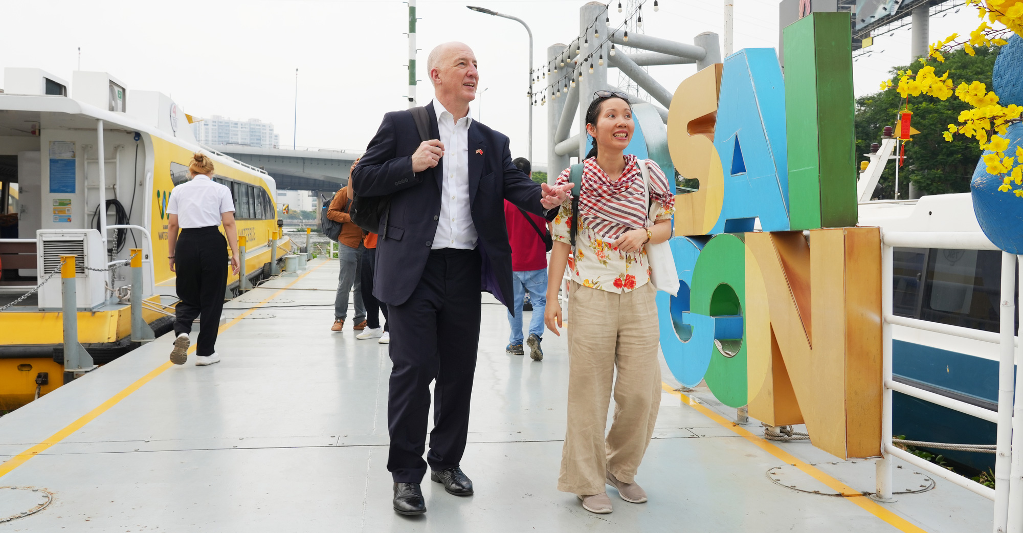 "Cứ như đi ngược thời gian" - vị cựu đại sứ nói với Tuổi Trẻ Cuối Tuần vào chiều 23-2, trong khi đợi tàu đi tham quan dọc sông Sài Gòn ở bến buýt đường sông Waterbiz.