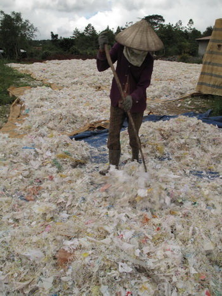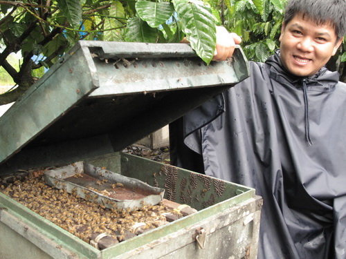 TTCT - Rừng Việt Nam không chỉ biến mất vì nạn khai thác gỗ bừa bãi, vì lâm tặc hoành hành, vì các dự án thủy điện tràn lan hay do mở trang trại trồng cà phê, cao su mà còn bởi nghề... nuôi ong! Khó tin được nghề thầm lặng ấy cũng góp phần phá rừng nguyên sinh, nhưng đó là điều có thật và mức độ tàn phá rừng do nuôi ong cũng thật khủng khiếp. Chương mở một thùng ong được làm từ rác nilông do anh tạo ra - Ảnh: Nguyễn Hàng Tình Ong “xơi” những rừng gỗ quý Suốt hơn 47 năm qua, kể từ ngày nghề nuôi ong xuất hiện ở VN - mạnh nhất tại Bảo Lộc (Lâm Đồng) và Đồng Nai - thì “nhà” cho ong ở đều được đóng băng những loại gỗ tốt nhất được khai thác từ rừng nguyên sinh: kiền kiền, sao, cà chít, căm xe... Vì chỉ làm bằng danh mộc thì thùng ong mới để được ngoài trời năm này sang năm khác, chịu đựng nắng mưa, di chuyển... Cứ mỗi mét khối gỗ quý chỉ đóng được 30-40 thùng ong. Mỗi đàn ong sống trong một thùng. Mỗi trại nuôi ong thường có 1.000-2.000 đàn ong. Cứ nhân lên cũng hình dung được số gỗ quý đã được sử dụng. Về lý thuyết, đóng cửa rừng cũng có nghĩa nghề nuôi ong ở VN phải “đóng” theo. Chúng ta đã đóng cửa rừng kể từ đầu thập niên 1990. Quãng năm 1996, tổng số đàn ong ở VN đạt khoảng 7.000 đàn, sản lượng mật mỗi năm chỉ vài trăm tấn, kém Thái Lan rất xa. Thế nhưng hiện ước tính VN đã có đến 1 triệu đàn ong với lượng mật thu được trên 20.000 tấn/năm, đã bỏ xa Thái Lan và đứng hàng thứ hai ở châu Á chỉ sau Trung Quốc. Thời gian qua, bất chấp khủng hoảng kinh tế, mật ong VN xuất khẩu vẫn ung dung thẳng tiến: giá từ 1,6-1,8 USD/kg tăng lên 2,1-2,3 USD/kg (giá xuất sang Canada và Mỹ). Từ vài công ty nuôi ong, nay cả nước có trên 20 doanh nghiệp chuyên nuôi ong lấy mật xuất khẩu với hàng trăm trại nuôi ong lớn nhỏ. Trước chỉ nông dân Lâm Đồng, Đồng Nai nuôi ong thì nay toàn Tây nguyên, miền Tây Nam bộ, rồi miền Bắc và ngay cả dải đất nghiệt Trung bộ cũng bắt đầu nuôi ong. Một nhà nuôi ong chuyên nghiệp có thâm niên hơn 30 năm ở Tây nguyên thừa nhận: “Muốn có những loại gỗ làm thùng nuôi ong phải biết “quan hệ” với các lâm trường, tử tế với kiểm lâm!”. Ông cho biết hễ nghe bất kỳ nơi đâu có kế hoạch khai thác rừng là tìm đến ngay để “đặt vấn đề”, thậm chí còn “đặt hàng” lâm tặc. Nghĩa là phải huy động mọi kiểu phá rừng để có nguồn gỗ từ rừng nguyên sinh đủ kích thước đóng thùng ong. Các nhà nuôi ong khẳng định ngành nuôi ong VN chắc chắn sẽ phát triển mạnh hơn nữa vào những năm tới (vì kinh tế trang trại đang lớn mạnh, nền nông nghiệp phát triển tạo điều kiện để ngành nuôi ong phát triển) và dự báo có thể đạt tới 7-15 triệu đàn ong. Làm một phép tính, 7 triệu đàn ong phải cần đến 200.000-250.000m3 gỗ đóng thùng, 15 triệu đàn phải cần có 400.000-500.000m3 gỗ. Nghĩa là mất cả một cánh rừng gỗ quý chỉ có trong các vườn quốc gia, khu bảo tồn thiên nhiên. Rác nilông sau khi thu gom về được rửa sạch và phơi khô - Ảnh: Nguyễn Hàng Tình Nhà cho ong làm từ... rác thải Một sáng mùa hè năm 2005 trong một quán cà phê tại TP.HCM, hai người đàn ông trò chuyện bên tách cà phê đầu ngày. Người lớn tuổi hơn quê ở Bảo Lộc, nuôi ong đã lâu năm than với chàng trai đồng hương Đặng Ngọc Chương (28 tuổi) rằng ông không còn tìm đâu ra gỗ để đóng thùng nuôi ong. Còn trẻ nhưng Đặng Ngọc Chương từng trải qua đủ nghề: bốc xếp hàng, phụ xe tải đường dài, phiên dịch tiếng Anh, theo dõi bảo dưỡng và tư vấn mua sắm các thiết bị cơ khí nhỏ cho các nhà thầu thi công công trình thủy điện Hàm Thuận - Đa Mi, thủy điện Sê San, Nhà máy ximăng Hà Tiên, đường hầm Hải Vân... Vài tháng sau buổi cà phê sáng ấy, anh khăn gói trở về Bảo Lộc. Câu chuyện về thùng ong cứ bám lấy Chương, khiến anh phải trở về quê với khát khao sẽ tạo ra một loại nhà cho ong không làm bằng gỗ rừng. Nếu chứng kiến quy trình biến rác thải nilông thành “nhà ong” của Đặng Ngọc Chương, những nhà tổ chức giải thưởng “xanh”, giải thưởng môi trường hẳn sẽ trao giải cao nhất cho anh. Tôi hỏi Chương đã mang phát minh đáng nể (dù anh cho là nhỏ nhoi) ấy đăng ký sở hữu trí tuệ chưa thì được trả lời: “Bây giờ phải lo tập trung làm thùng cái đã, mùa đánh mật đến rồi, bà con đang hối thúc quá chừng!”. Suy nghĩ mãi, Chương chợt nghĩ đến những bao nhựa phế liệu nông dân vứt bỏ đầy ở các rẫy trà, cà phê, vườn rau, đồng lúa... Đã có nhựa là chất kết cấu cơ bản, anh nghĩ đến một thứ kết dính đồng thời cũng là vật liệu giảm nhiệt và tạo được sự thân thiện với ong chẳng khác gì gỗ. Sao không là vỏ trấu, vỏ cà phê và nhiều thứ vỏ thực vật khác vốn cũng dễ tìm chẳng khác gì bao nilông? Tiếp đến, anh đi tìm hình dạng khuôn để ép bao nilông và vỏ trấu thành từng mảnh như ván để làm thù