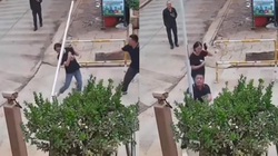 Đá đống rác trên vỉa hè, người phụ nữ trượt chân suýt ngã, lập tức trút giận vào gương chiếu hậu ô tô gần đó. Hành động khó hiểu khiến người xem ngỡ ngàng.