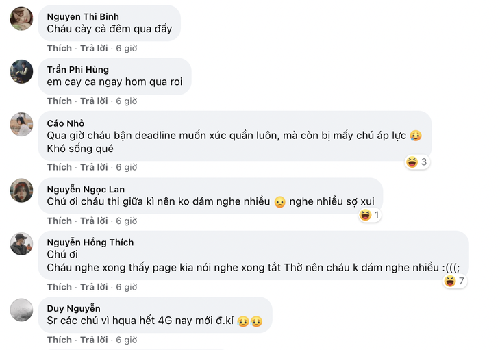 "Sorry các chú vì hôm qua cháu hết 4G nay mới kịp đăng kí".