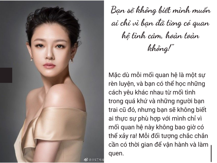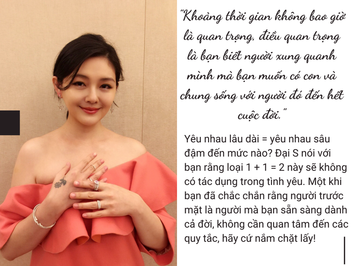 Là người từng trải trong chuyện tình cảm, Đại S rất thấu hiểu trong mọi mối quan hệ, và thường tiết lộ quan điểm về tình yêu của mình trên các chương trình và các cuộc phỏng vấn.