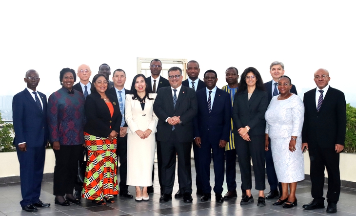Thứ trưởng Bộ Ngoại giao Lê Thị Thu Hằng tiếp các đại sứ đặc mệnh toàn quyền không thường trú ngày 19-1 - Ảnh: Bộ Ngoại giao