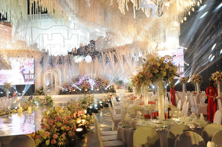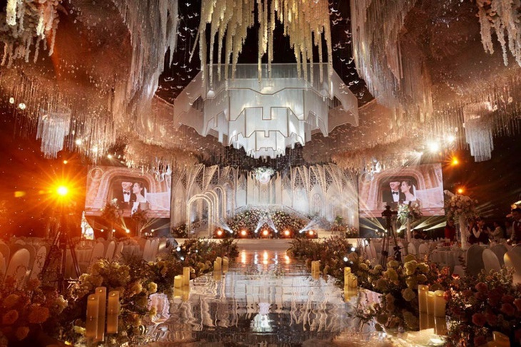 Bên trong không gian sảnh cưới được trang trí lộng lẫy tựa truyện cổ tích. (Ảnh Facebook)