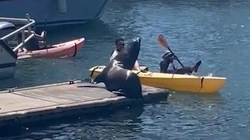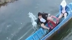 Không chỉ ướt sũng người giữa tiết trời 14 độ C, người đàn ông chèo thuyền còn "đi tong" cả chiếc điện thoại trong túi quần.
