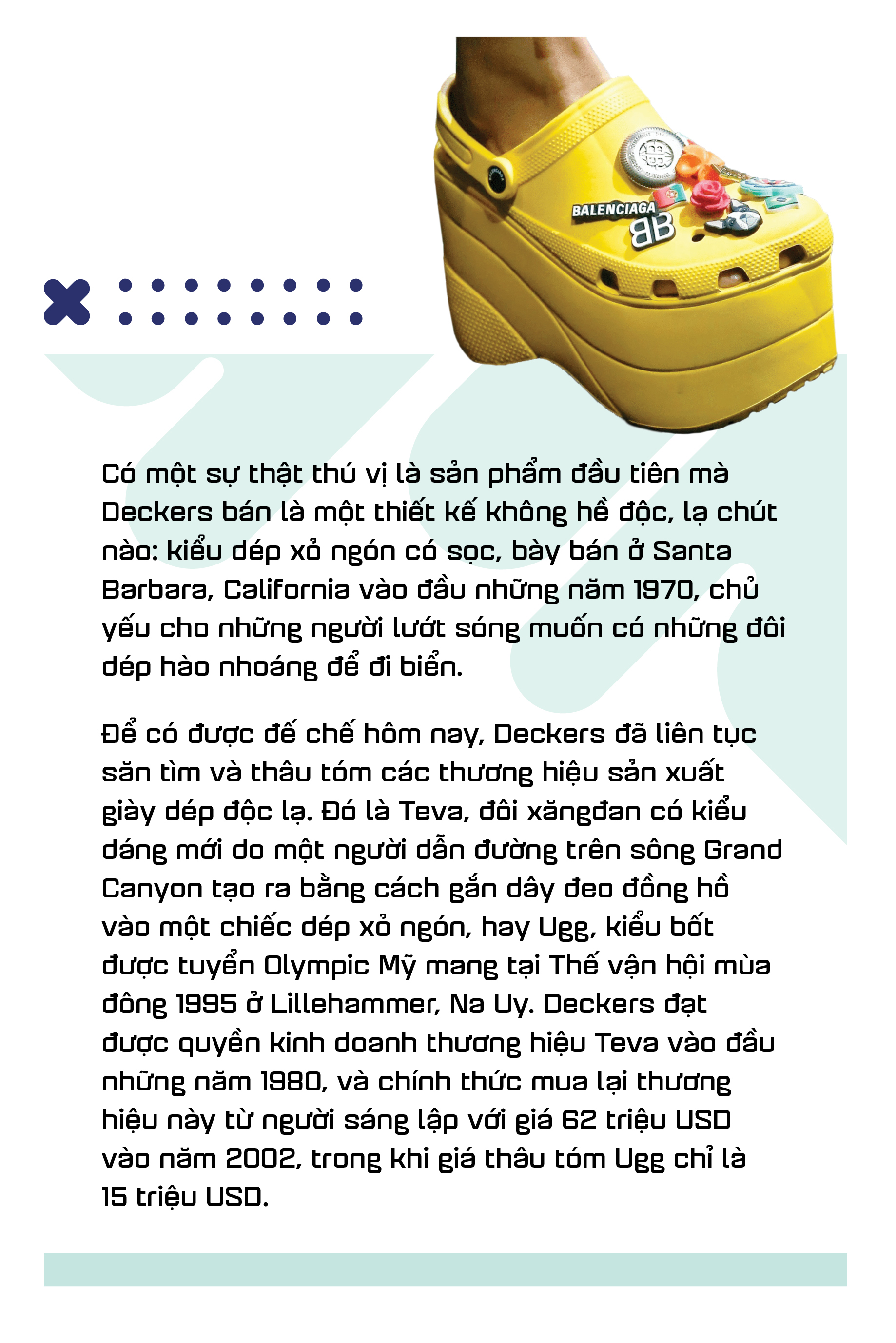 Đứng sau hàng loạt thương hiệu giày xấu phổ biến là Deckers Outdoor Corp., tập đoàn trong gần nửa thế kỷ qua đã âm thầm xây dựng một đế chế "giày xấu giá cao" trị giá hàng tỉ USD.