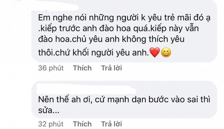 Trước chia sẻ rất đáng yêu của Mr Đàm, nhiều người hâm mộ đã ủng hộ tinh thần của anh rằng "duyên chưa tới". Một số khác lại cho rằng vì ở tầm của nam ca sĩ phải chọn người xứng đáng thay vì "quơ đại" vì cô đơn.