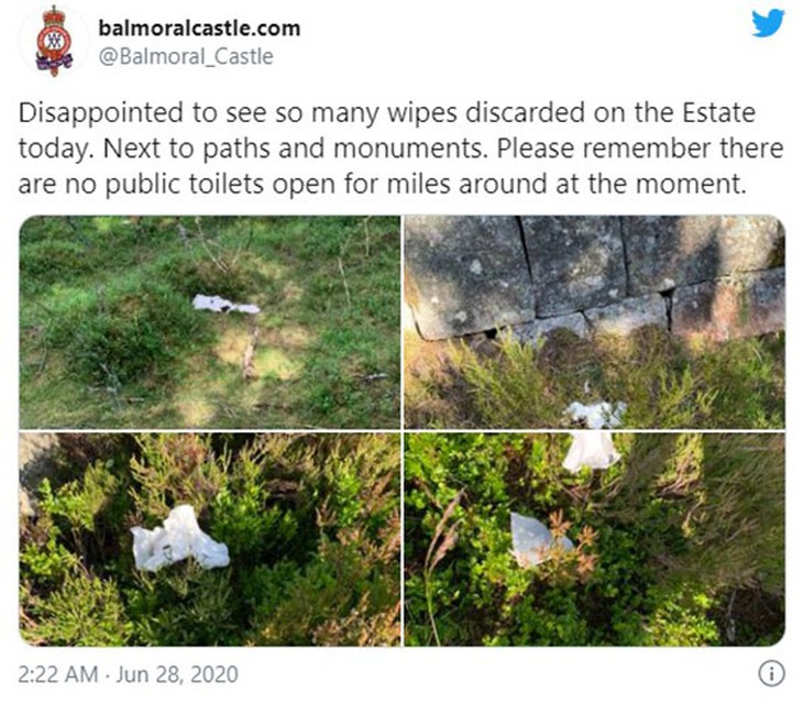 Theo CNN, ban quản lý lâu đài Balmoral phải thốt lên: "Vấn đề là chúng tôi tìm thấy rất nhiều giấy vệ sinh không phân hủy vương vãi khắp nơi. Ngoài ra, hầu hết mọi người đều chọn 'giải quyết bầu tâm sự' ở những khu vực quang đãng dễ thấy như cạnh các con đường lớn hay quanh các tượng".
