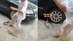 Thấy con rắn hổ mang bò vào nhà, đàn chó liền vây quanh tấn công. Lát sau, chủ nhà phát hiện và dùng gậy bắt gọn. May mắn, không có chú chó nào bị thương.