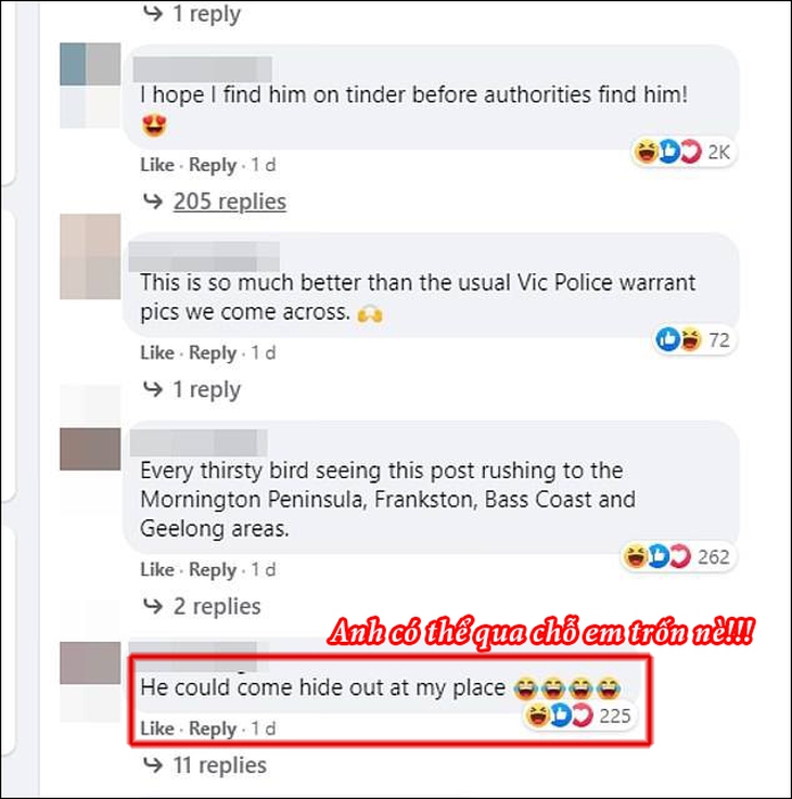 Dân mạng mời gọi trai đẹp bị cảnh sát Úc truy nã 'qua em trốn nè'