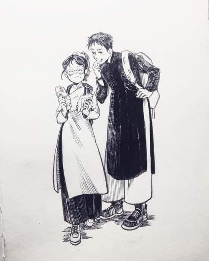 - Áo dài nữ thì hơi ôm vào người, nhưng áo dài nam sẽ rộng hơn. Mọi người nhìn vào phom dáng đều thấy sự khác biệt mà. Tui ủng hộ nha.