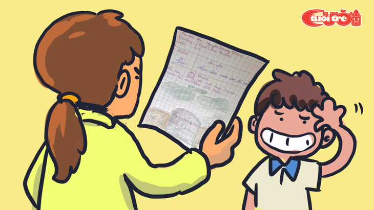 - Bài kiểm tra này là "hàng fake" rồi. Ai đời thầy cô chấm điểm lại dùng mực xanh thế kia?
