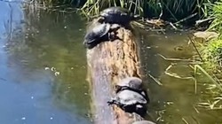"Tha cho bọn em đi anh khỉ ơi! Tụi em đang tắm nắng mà", rùa said.