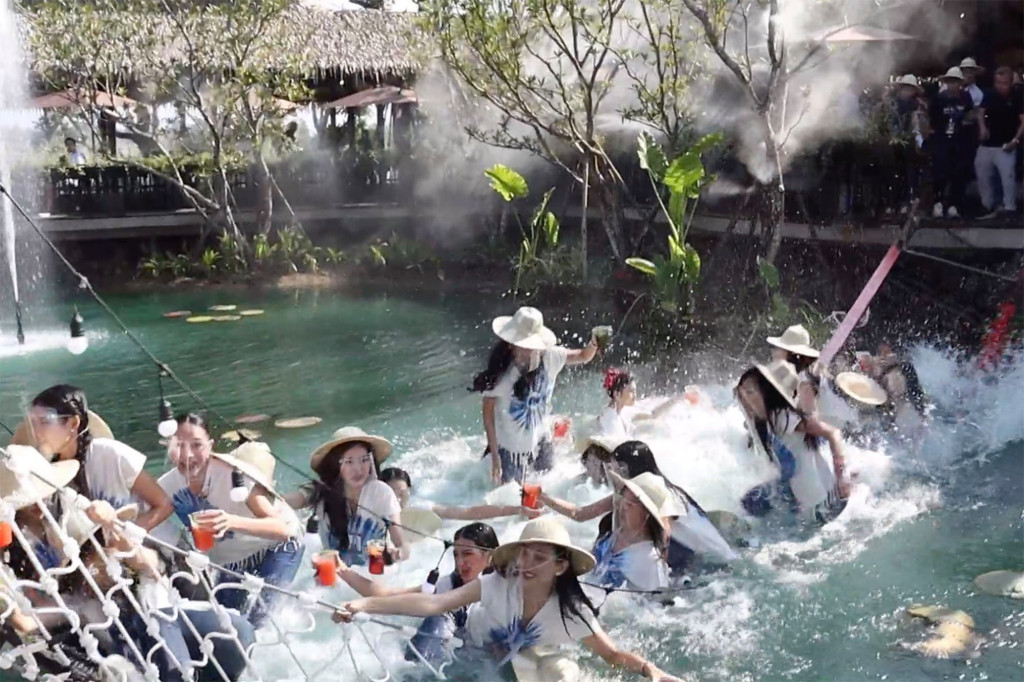 Theo đó, trong khuôn khổ cuộc thi Hoa hậu Thái Lan 2020, 30 người đẹp đã đến thăm một quán cà phê sân vườn và chụp ảnh trên một cây cầu treo được xây dựng bằng dây thừng với một lối đi bộ bằng sắt. Tuy nhiên, có lẽ việc 30 người đẹp cùng tạo dáng trên đó khiến cây cầu quá tải, đứt dây làm cho tất thảy rơi xuống nước bẩn.