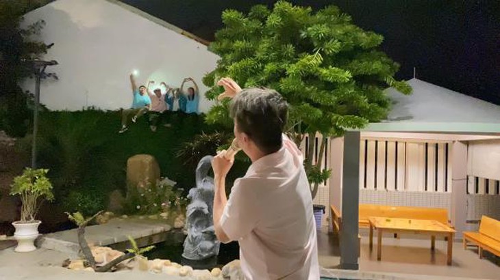 Kỷ niệm khó quên tại Vũng Tàu! Kế bên là nhà hàng, các nhân viên nghe tui hát với bạn bè thế là rủ nhau leo tường ngồi xem... Siêu dễ thương! Này các fans khắp nơi ơi. Tớ muốn gặp các cậu chiều mai! Tầm chiều chiều tối tối... được không? Khoảng đâu 6.30 - 7 giờ tối! Tớ sẽ cho các cậu thấy mặt tớ! Còn các cậu cho tớ thấy gì ngoài like, thả tim, comment, tặng sao? Nói nghe coi hấp dẫn tớ không?".