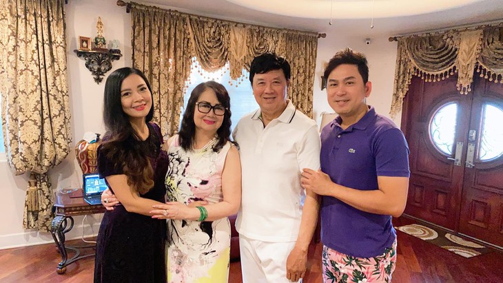 Vợ chồng nghệ sĩ Bảo Quốc bên con gái Hồng Loan (trái)