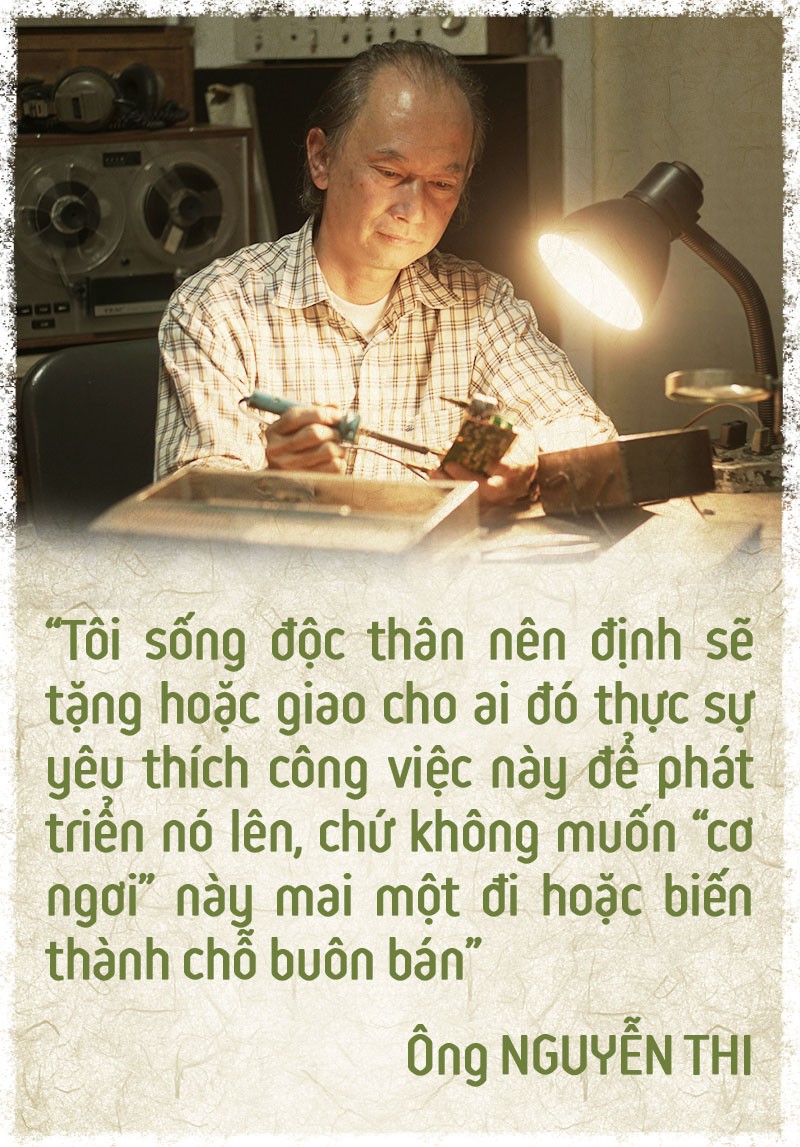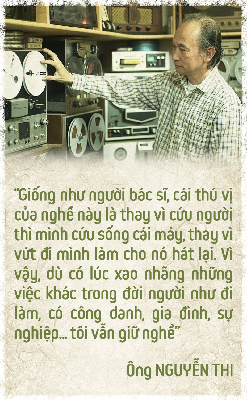 "Giống như người bác sĩ, cái thú vị của nghề này là thay vì cứu người mình cứu sống cái máy, thay vì vứt đi mình làm cho nó hát lại. Vì vậy, dù có lúc xao nhãng những việc khác trong đời người như đi làm, có công danh, gia đình, sự nghiệp… tôi vẫn giữ nghề", ông Thi bộc bạch.
