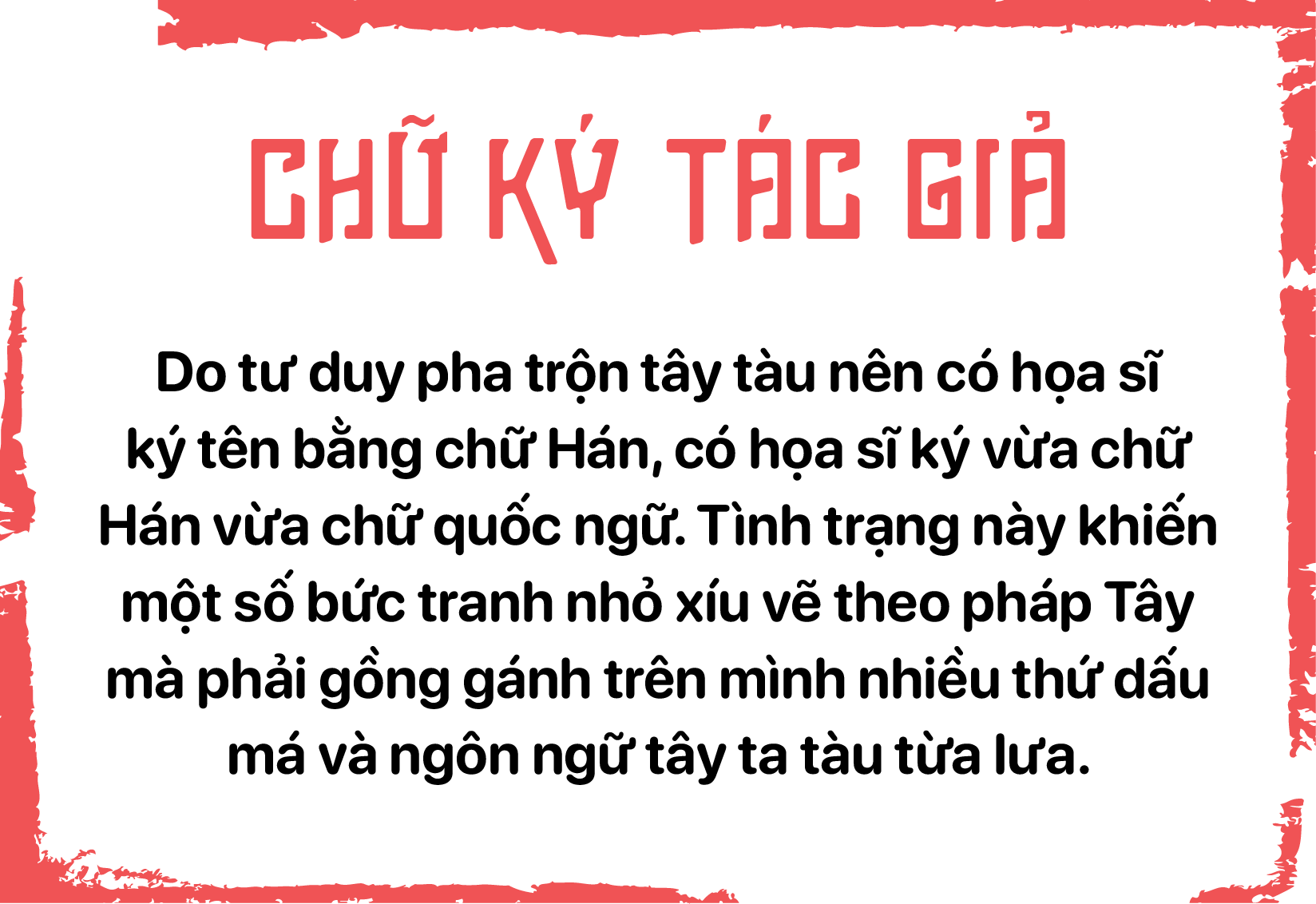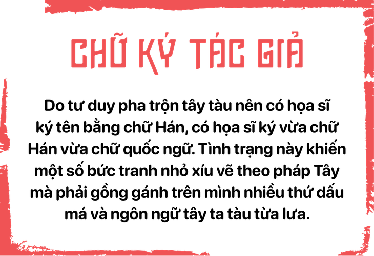 Với đặc thù ảnh hưởng văn hóa Trung Hoa, nhiều họa sĩ Việt thời kỳ đầu dùng con dấu chữ Hán triện hoặc chữ Việt cách điệu theo thể thức triện để phụ thêm cạnh chữ ký tác giả trên góc tranh.