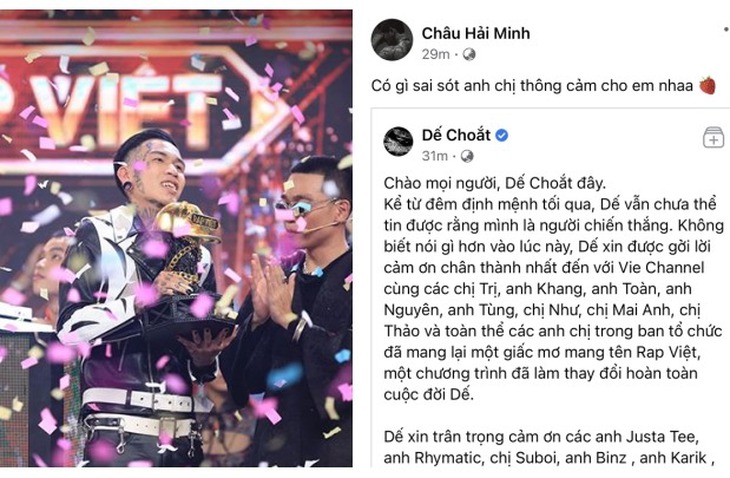 Dế Choắt viết tâm thư sau đăng quang 'Rap Việt'