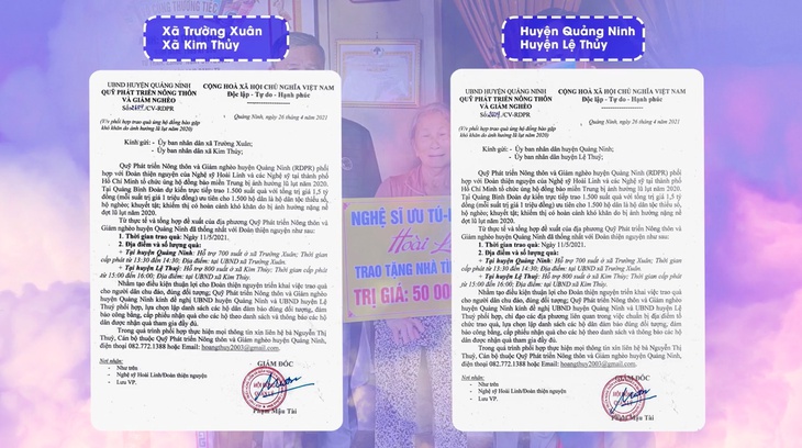 Ngoài lời trần tình, danh hài Hoài Linh cũng đăng tải những hình ảnh đầy đủ thông tin biên nhận và chứng nhận từ ngân hàng cũng như chính quyền địa phương tại những nơi ông đã gửi tiền cứu trợ.