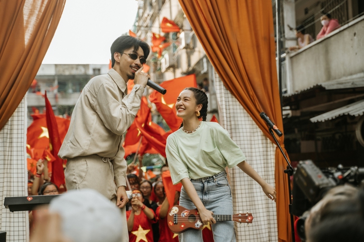 Cờ đỏ sao vàng tung bay ở các bối cảnh khác nhau như đường phố đến chung cư, ngõ hẻm, bữa cơm gia đình, cùng sự xuất hiện của rất nhiều diễn viên thuộc các độ tuổi, giới tính, nghề nghiệp khác nhau đã cho thấy bóng đá gắn kết mọi người như thế nào.