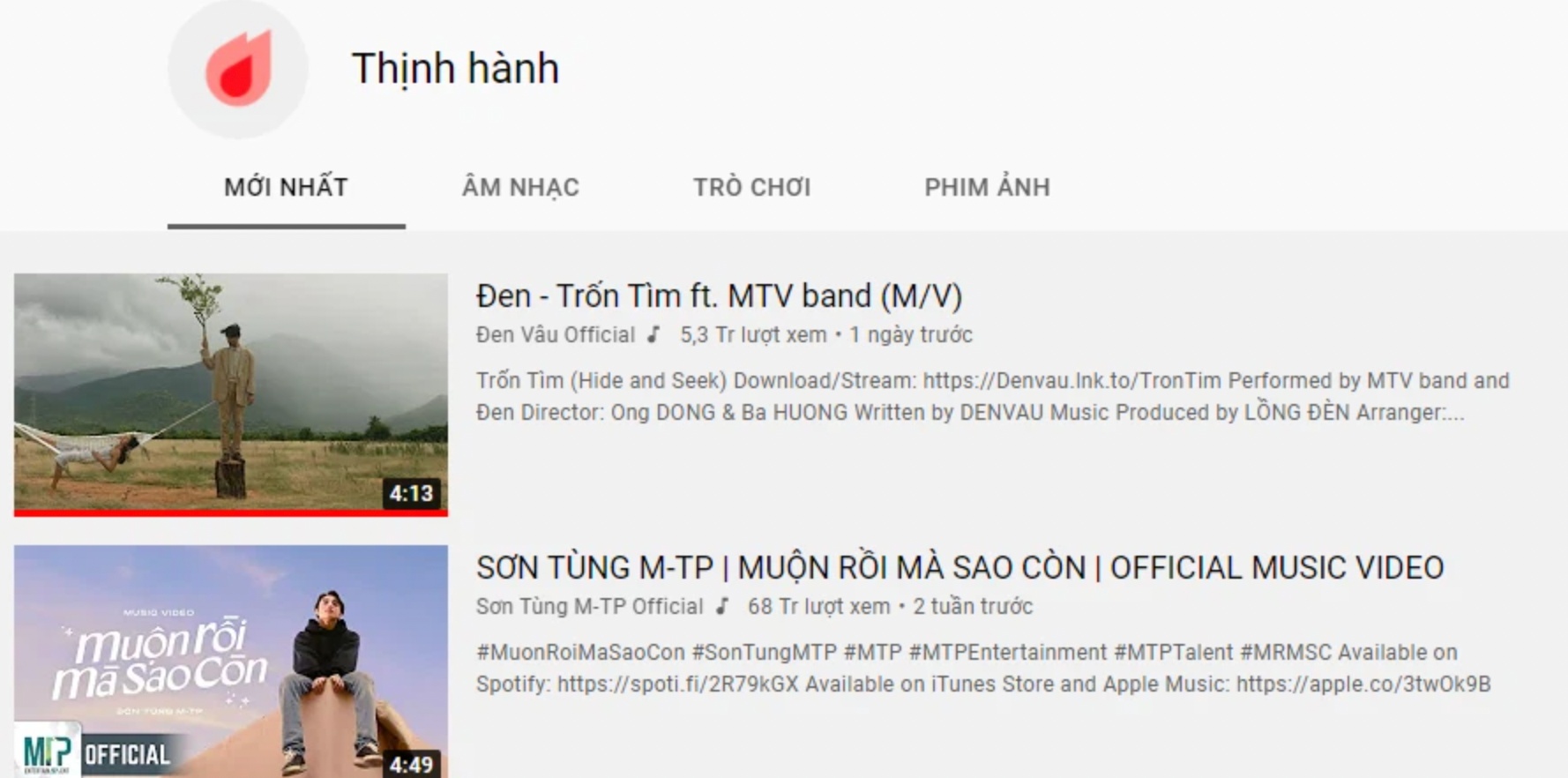 Đen Vâu đã chính thức soán ngôi vương của Sơn Tùng trên Top Trending YouTubeMV Trốn tìm với ý tưởng kịch bản độc đáo từ The Red Team và được thực hiện bởi đạo diễn Thành Đồng. Không cầu kỳ hoa mỹ, hình ảnh của MV Trốn tìm đơn giản, gần gũi, phủ gam màu trầm ấm, cùng bối cảnh thiên nhiên có phần hoang dã, bụi bặm.