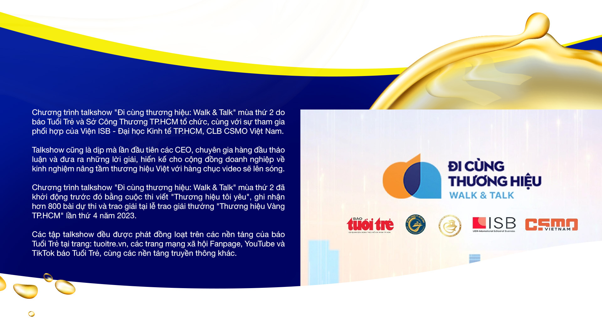 Dưới sự dẫn dắt của host Nguyễn Tiến Huy - tổng giám đốc Pencil Group, trưởng ban nội dung CSMO Miền Nam, hành trình bứt phá về doanh số lẫn tên tuổi của thương hiệu di sản Tường An hậu M&A đã được ông Bùi Thanh Tùng, phó tổng giám đốc Tập đoàn KIDO kiêm tổng giám đốc Công ty CP Dầu thực vật Tường An, tiết lộ trong chương trình Đi cùng thương hiệu 'Walk and Talk' mùa 2.