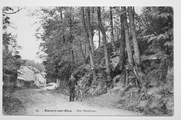 TTCT - Một thế kỷ sau khi Vincent Van Gogh qua đời, hậu thế vẫn băn khoăn đâu là bức tranh cuối cùng của ông, ông đã đi đâu, làm gì vào cái ngày định mệnh 27-7-1890. Những bí ẩn đó cuối cùng đã được giải mật một cách tình cờ qua một tấm bưu thiếp cũ. Bức Wheat Field with Crows (Đồng lúa mì với những con quạ) của Van Gogh. Ảnh: Wikimedia CommonsNgày 20-5-1890, sau khi rời trại tâm thần Saint Paul ở Saint-Rémy, Vincent Van Gogh chuyển đến xã Auvers-sur-Oise, ngoại ô Paris, theo sắp xếp của em trai Theo Van Gogh, vừa để tránh xa phố thị ồn ào căng thẳng, vừa để tiện lui tới nhà bác sĩ Paul-Ferdinand Gachet, theo dõi bệnh tình. Hơn hai tháng sống ở đó, họa sĩ đã vẽ tới 77 bức tranh, mà ngày nay trở thành những bức Van Gogh đắt giá nhất. Nhưng vào ngày 27-7, ông đã trở về quán trọ với vết thương đẫm máu, rồi mất vào ngày 29-7, sau đúng 70 ngày ở Auvers.Bức tranh cuối cùngVan Gogh (1853 - 1890) chỉ ghi tháng năm trên tranh, nên khi giới nghiên cứu đồng ý rộng rãi rằng họa sĩ đã kết liễu đời mình bằng cách bắn vào bụng, việc xác định đâu là bức tranh cuối cùng của ông phải căn cứ thêm vào một dấu hiệu: sự hỗn loạn. Đó là điều mà người đời tin rằng sẽ trỗi dậy trong một người muốn tự tử và là điều Van Gogh cũng thể hiện trong những bức thư cuối cùng gửi em trai. Và vì tác phẩm cuối cùng của danh họa có lúc từng được cho là bức Wheat Field with Crows (Đồng lúa mì với những con quạ) vẽ một cánh đồng rực rỡ nhưng bầu trời phía trên lại vần vũ mây và hằn những vệt đen đầy ám ảnh của một đàn quạ.Năm 2012, nhà nghiên cứu mỹ thuật Louis van Tilborgh và là nhà nghiên cứu cây thân gỗ Bert Maes đã đưa ra những bằng chứng cho thấy bức vẽ cuối cùng của Van Gogh không phải là phong cảnh một cánh đồng. Cứ liệu của họ có những dòng trích từ một bài báo mà Andries Bonger, em rể của Theo Van Gogh viết năm 1893 về cái chết của họa sĩ.Bài viết có đoạn: “Buổi sáng trước khi chết, anh ấy đã vẽ phong cảnh rừng cây, đầy nắng và sự sống”. Bức vẽ đó, theo Van Tilborgh và Bert Maes là Tree Roots (Những cái rễ cây), một trong 23 bức được thực hiện trong tháng 7-1890 trên khổ canvas vuông đúp đặc trưng mà Van Gogh đã dùng cho loạt tranh cuối cùng. Bức Tree Roots, Vincent van Gogh, tháng 7-1890, kích thước 50x100cm, chất liệu sơn dầu trên canvas. (Bảo tàng Van Gogh, Amsterdam, Hà Lan)Tree Roots chất chứa sự hỗn loạn nhiều hơn hẳn Wheat Field with Crows. “Bức tranh này mới nhìn có vẻ là một đám lộn xộn của những màu sáng và những hình thù trừu tượng lạ kỳ. Phải đến sau đó bạn mới nhận ra nó thể hiện một triền dốc với những thân cây và rễ cây. Đó là những cây trồng lấy gỗ, mọc ở một mỏ đá vôi. Những mỏ đá như vậy có thể được tìm thấy quanh Auvers (Pháp). Tác phẩm chưa được vẽ xong. Điều đó giải thích vì sao bề mặt tranh chưa được hoàn thiện. Nó có lẽ là bức cuối cùng của Van Gogh...” - Bảo tàng Van Gogh tại Amsterdam, Hà Lan, nơi đang trưng bày bức Tree Roots, đã giới thiệu về tác phẩm này như vậy trên website của họ. Người ta đã xác định được những loại cây trong bức tranh. Đó là những cây du núi. Người ta cũng đã xác định được chất đất có màu vàng hơi hồng. Đó là đất pha đá phấn, phong hóa từ những gì còn lại của một mỏ đá vôi bỏ hoang. Người ta còn xác định được cả địa thế chỗ những cái cây mọc lên. Đó là một triền dốc… Nhưng vẫn còn đó một câu hỏi suốt một thế kỷ qua, rằng Van Gogh đã vẽ cảnh rừng cây này ở đâu trong xã Auvers, hay đó chỉ là hình ảnh ông tưởng tượng ra từ những chất liệu địa phương?Tấm bưu thiếp cũSinh ra và lớn lên ở Auvers, Paul Gachet Jr., con trai bác sĩ Paul-Ferdinand Gachet, trong quyển Les 70 jours de Van Gogh à Auvers (70 ngày của Van Gogh ở Auvers), 1959, không đánh giá cao bức Tree Roots và đã viết: “Tấm canvas này không phải là một bức phong cảnh: Nó là một bức vẽ thử nghiệm mà hoàn toàn không có một đặc trưng địa phương nào. Không thể đặt nó vào bất cứ rừng cây nào trong vùng đồng quê quanh Auvers”.Rồi thì: “Thứ gọi là bụi cây này thật sự không thể hiểu được: Hết thảy nó chỉ là một cái cớ để vẽ ra một đống - xét cả về màu sắc và đường nét - rễ cây, gốc cây, thân cây, và cỏ lá”... Paul Gachet Jr. hẳn sẽ hối hận, nếu ông được xem thứ mà nhà nghiên cứu Wouter Van der Veen, giám đốc khoa học của Viện Van Gogh ở Auvers, may mắn được xem vào mùa xuân 2020.Đó là tấm bưu thiếp đen trắng có hình ảnh một người đàn ông đang dắt xe đạp đi qua một đoạn đường với một bên là sườn dốc um tùm cây cối và xa xa là những căn nhà mái dốc. Chú thích trên bưu thiếp cho thấy cảnh được chụp vào khoảng năm 1900 - 1910 là một đoạn đường Daubigny ở Auvers. Tiến sĩ Van der Veen tình cờ thấy hình ảnh này khi xem xấp bưu thiếp cũ mượn từ một nhà sưu tập người Pháp. Và những 