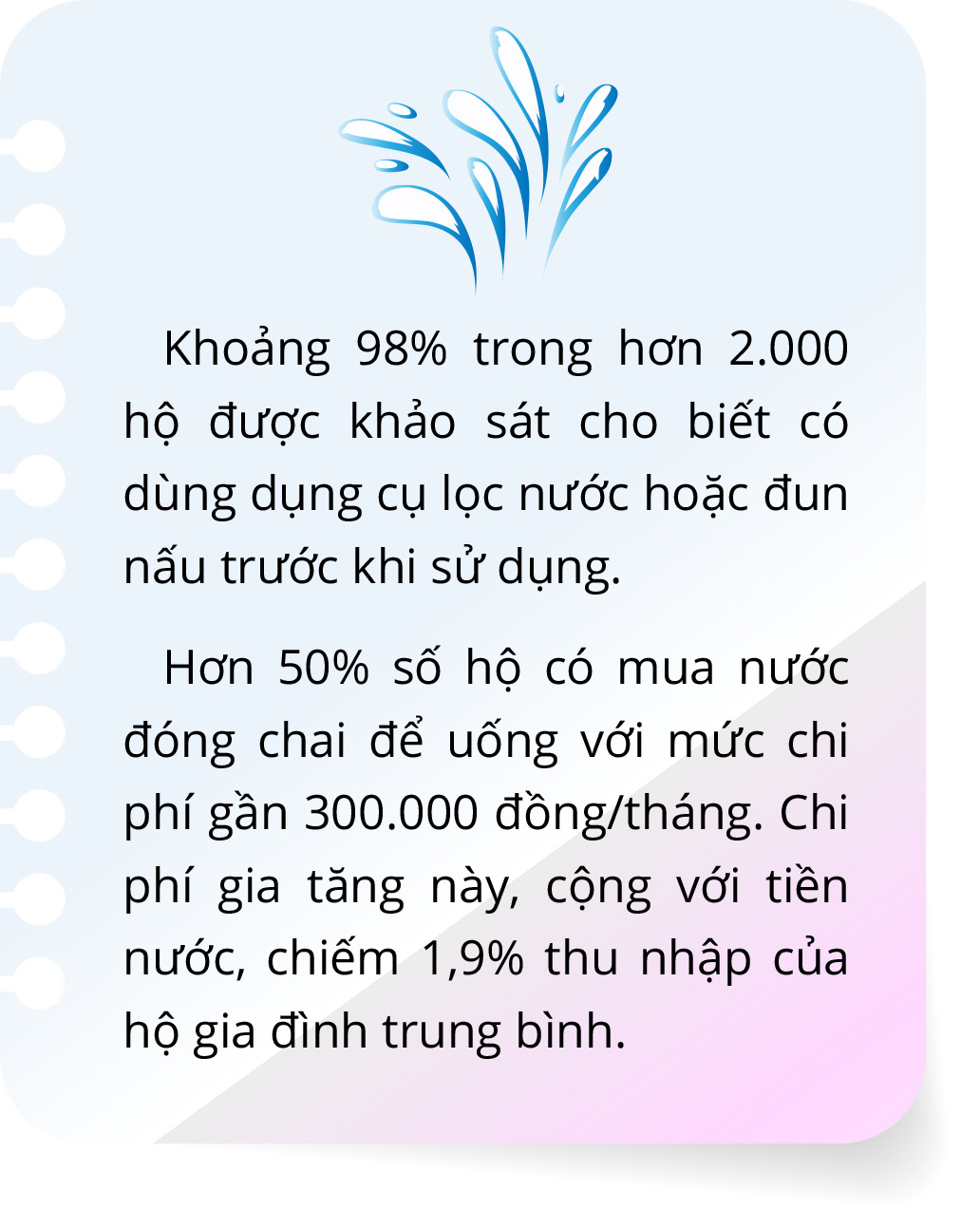Tuy nhiên, chi phí thực tế cho nước sinh hoạt cao hơn mức này do rất hiếm hộ gia đình sử dụng nước trực tiếp từ vòi không qua đun nấu.