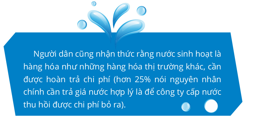 Như vậy trên thực tế, công ty cấp nước thu được gần một nửa tổng chi phí nước sạch người dân bỏ ra, phần còn lại chia ra cho các dịch vụ tự nâng cấp chất lượng nước của hộ dân.