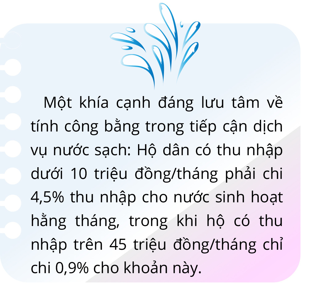 Đây là tiền đề quan trọng cho đổi mới hoạt động, cải tiến quản trị và vận hành hệ thống bền vững. Chính sách giá đúng phải dựa trên nguyên tắc thu hồi được chi phí mà không gây bất ổn xã hội và đảm bảo tiếp cận nước sạch cho mọi người.