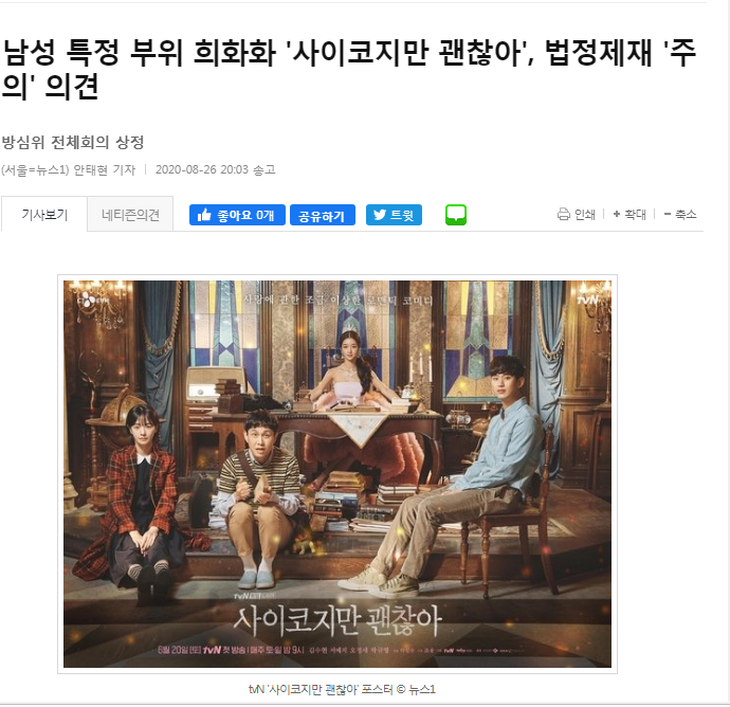 Tối 26-8, mạng xã hội lại được một phen xôn xao khi truyền thông Hàn Quốc đưa thông tin về việc bộ phim truyền hình của đài tvN Điên thì có sao với sự góp mặt của Kim Soo Hyun và Seo Ye Ji bị Uỷ ban Tiêu chuẩn Truyền thông Hàn Quốc đưa thông báo xử phạt, vì sử dụng nhiều từ ngữ không đúng với quy tắc chuẩn mực.