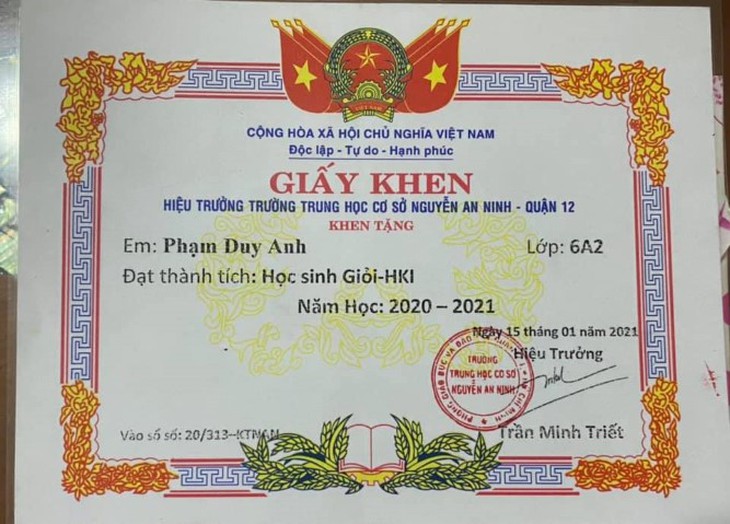 Thường xuyên bận rộn với lịch quay phim, Duy Anh vẫn khiến nhiều người ngưỡng mộ khi duy trì thành tích học tập nổi bật. Mới đây, trên trang cá nhân của mẹ của diễn viên Duy Anh, chị Kim Huệ đăng tải thông tin diễn viên Duy Anh đạt Giải Đồng Olympic môn Toán TP. HCM. Trước đó, Duy Anh từng làm liên đội trưởng của Trường tiểu học Võ Văn Tần (Q.12, TP. HCM) và có thành tích học tập đáng nể.