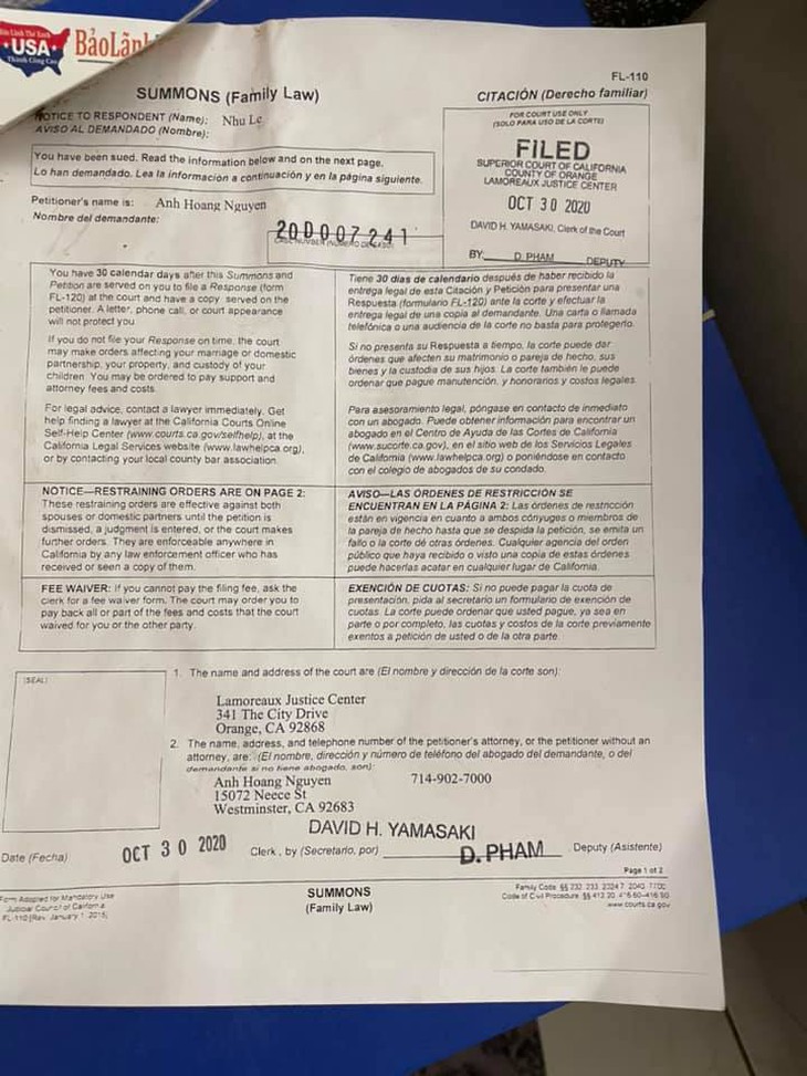 Anh mải mê đi quay, đi chơi... cùng bạn bè. Anh nhớ không ngày Lễ Tạ Ơn... Em một mình lái xe chở con gái đến nhà bạn anh và gọi anh ra để em và con gặp anh nhưng anh đã bảo bạn anh ra chụp ảnh mẹ con em và nhất quyết không ra.