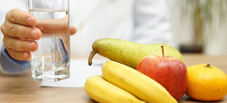 - Đầu tiên phải kể đến là nước, chúng ta phải đảm bảo đủ nước mỗi ngày từ 2 - 2,5 lít nước. Thiếu nước là nguyên nhân hàng đầu dẫn đến táo bón và nhiều bệnh khác.