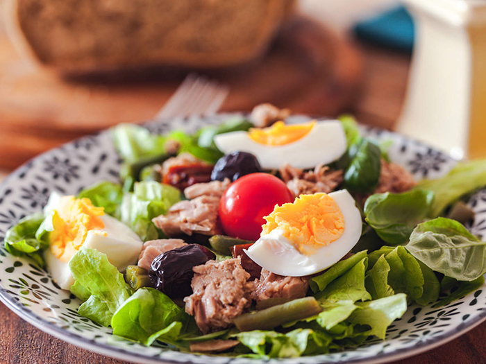 Khẩu phần ăn trong mỗi bữa ăn đều có một phần thực phẩm giàu protein. Người ăn chay có thể bao gồm 2 - 3 phần ăn mỗi ngày gồm đậu, đậu nành, sữa và các sản phẩm từ sữa, các loại hạt. Ngoài ra, bột đậu gà, đậu phộng và nấm cũng là những lựa chọn tốt.