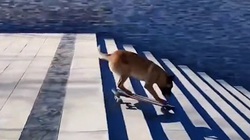 Đoàn người đi chúc Tết bị chú chó ngáng đường