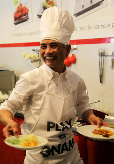 TTCT - Anh Nguyễn Chữ, một Việt kiều sống ở Torino, Ý hơn bốn thập niên, đã qua mặt các ứng viên Ý để đoạt giải nhất trong một cuộc thi ẩm thực ở xứ sở của phong trào slow-food. Bí quyết của anh là... nước mắm! Anh đã dành cho TTCT một cuộc trao đổi thú vị. Anh Nguyễn Chữ - Ảnh nhân vật cung cấpAnh Chữ biểu diễn nấu ăn trong cuộc thi* Chúc mừng anh với giải thưởng đặc biệt này. Nhưng trước hết, anh hãy tự giới thiệu với độc giả của TTCT.- Tôi là một Việt kiều, quê quán ở Quảng Nam, học Trường Trần Quý Cáp, Hội An rồi Kỹ thuật Đà Nẵng. Cuối năm 1972, tôi đang học năm 2 Trường Quốc gia kỹ sư công nghệ ở Trung tâm Bách khoa Phú Thọ (Sài Gòn) thì được học bổng sang Ý. Tôi tốt nghiệp ngành kỹ sư điện tử tại Trường đại học Bách khoa công nghệ Torino. Hiện nay tôi đang giữ chức vụ trưởng khâu phần mềm chi nhánh Ý của Tập đoàn ITW Corp. Test and Measurement.Slow-food trở lại... ngày xưa* Nghe nói anh là “tín đồ” của slow-food và việc đoạt giải thưởng ẩm thực này đã phần nào khẳng định điều đó. Nhưng sao anh lại chí thú với slow-food đến vậy?- Tôi vô cùng thích thú khi được hỏi về đề tài này vì đây là một trong những hoạt động văn hóa tiên tiến của Ý cần được phổ biến, học hỏi. “Dĩ nông vi bổn” gần như là một khẩu hiệu ngầm của phong trào này.Slow-food phát sinh từ Torino (miền Bắc Ý, “lãnh địa” của Tập đoàn công nghiệp xe hơi Fiat), hiện nay đã trở thành một tổ chức văn hóa ẩm thực phi lợi nhuận, có mặt ở 150 quốc gia trên thế giới. Những năm gần đây, song song với ý thức về bảo vệ môi trường và phát triển năng lượng tái tạo, ở các nước phương Tây xu hướng slow-food (vừa ăn vừa thưởng thức) đang lan nhanh. Trào lưu này được xem như một phản ứng, đối trọng với fast-food (vừa ăn vừa chạy) xuất hiện mấy thập niên trước với sự ra đời của các cửa hàng thức ăn nhanh như McDonald, KFC, Burger King... Cùng với fast-food là các công nghệ chế biến thực phẩm siêu tốc, đốt cháy tất cả các quá trình lên men, chín muồi tự nhiên của thực phẩm, dẫn tới những hệ lụy cho sức khỏe.Không chỉ do hàm lượng hóa chất hay dầu mỡ cao hơn mức độ cơ thể có thể tiếp nhận, cung cách “vừa ăn vừa chạy” đã tạo ra những phong cách ẩm thực biến tướng, trong đó người ta “chạy” nhiều hơn “ăn” nên rồi cũng đánh mất đi việc thưởng thức ẩm thực, vốn là cái thứ nhất trong “tứ khoái” của cha ông.Cho đến nay, ở Tây Âu đã có hàng loạt tổ chức mua bán thực phẩm, các cơ sở nông nghiệp và chăn nuôi hoạt động theo tư duy slow-food: hoàn toàn không dùng các “mưu chước” nguy hiểm để kích thích tăng trưởng hay biến đổi thời vụ, không dùng hóa chất độc hại để tăng tốc các quá trình chế biến thực phẩm. Nói chung là tìm cách trở lại các công thức cấy trồng chăn nuôi và chế biến thực phẩm dựa theo các quy luật thiên nhiên và đồng thời tôn trọng môi trường.* Vì sao một trào lưu ăn uống khoan thai để thưởng thức như thế lại bắt nguồn từ lãnh địa của công nghiệp ôtô?- Không phải tình cờ mà phong trào slow-food sinh ra từ Cuneo, một tỉnh thuộc vùng Piemonte mà Torino là thủ phủ. Đây là một trong những cái nôi của ẩm thực Ý, quê hương số một của rượu vang Ý, như Spumante Asti (vang sủi bọt Ý) hay Barolo... Đây còn là quê hương của loài nấm tartufo nổi tiếng trong thế giới ẩm thực, giá thường trên 1.000 euro/kg. Trong bản tuyên ngôn đầu tiên năm 1987, trong 13 nhân vật tên tuổi ký tên ngoài Carlo Petrini còn có Dario Fo - giải Nobel văn chương.Dưới ảnh hưởng trực tiếp của slow-food ở Torino đã mọc lên rất nhiều dự án làm mới cả nền văn hóa đã cao cấp của ẩm thực Ý, ví dụ như sự ra đời của Hãng kem GROM, do hai thanh niên dưới 30 tuổi chủ trương cách đây gần mươi năm, đã “cách mạng” cung cách làm kem Ý, một ngành (thủ) công nghiệp tưởng đã hoàn hảo.Cũng trong quỹ đạo của slow-food là tuyến siêu thị Eataly (ghép từ chữ “ăn” trong tiếng Anh là “eat” và “Italy”). Tôn chỉ thương mại của Eataly là “kiếm lời nhờ chất lượng” và một khẩu hiệu (xã hội) khác được treo trong các cửa hàng Eataly là “cơ hội cho mọi người”.Thật vậy, nếu người nào không đủ điều kiện mua những thức ăn sang cả thì trong đó vẫn có những món hàng bình dân bảo đảm chất lượng như cá thu con bảo đảm tươi giá 12 euro/kg (trong khi giá cá thu lát lớn là 50 euro/kg), cá sòng con giá 8 euro/kg... Họ còn làm thẻ giảm giá cho người hưu trí và mới đây trong mùa rau thì là, họ đã bán miễn phí cho người hưu trí.Anh Nguyễn Chữ bắt tay cảm ơn ban giám khảo, sau khi được vinh danh người thắng giải nhất trong tiếng reo hò phấn chấn của các cổ động viên - Ảnh nhân vật cung cấpNước mắm hội nhập ẩm thực Ý* Với một người mà nghề “kiếm cơm” là tin học, không thể không thắc mắc nguyên nhân nào anh l