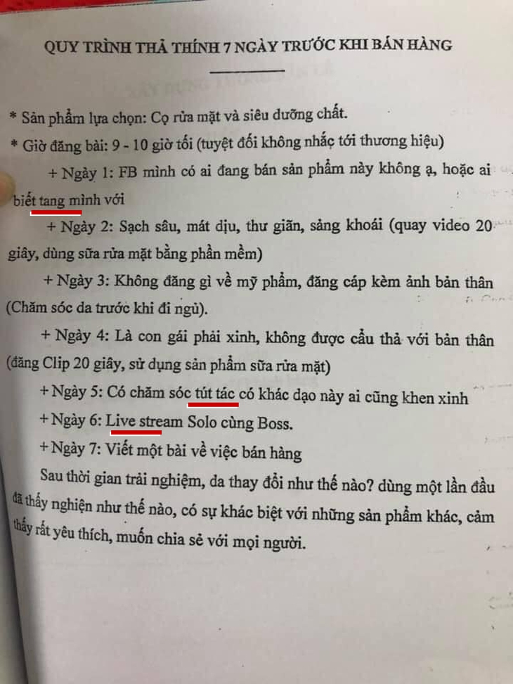 Mới đây, một nhóm cộng đồng chuyên đăng tải những câu chuyện liên quan đến hội chị em phụ nữ đã "bóc phốt"... "bí kíp chân truyền" của các thánh bán hàng online hiện tại. Theo đó, không phải ai cũng có thể thao thao bất tuyệt mà chẳng cần phải kịch bản đâu, bởi tất cả đều đã có quy trình, có "mánh lới" cả!