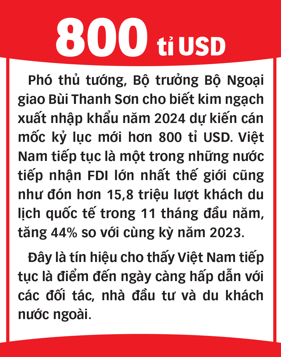 Trong năm 2024, các hoạt động đối ngoại, nhất là đối ngoại cấp cao, diễn ra sôi động và rộng khắp các châu lục và tại nhiều diễn đàn, cơ chế đa phương quan trọng.