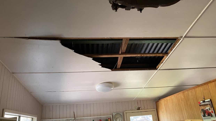 Một trong những con trăn thảm lớn đã rơi qua trần nhà bếp của ông David Tait. (Ảnh: BNSCAR.)Ông Tait đã gọi điện tới Trung tâm Bắt và tái định cư rắn của Brisbane. Chuyên gia bắt rắn Steven Brown, người được cử tới giúp, nói với chương trình Today rằng đó là hai con trăn đực, dường như đang đánh nhau để giành một con trăn cái - con thứ ba cũng đã rơi vô bếp nhà ông Tait.