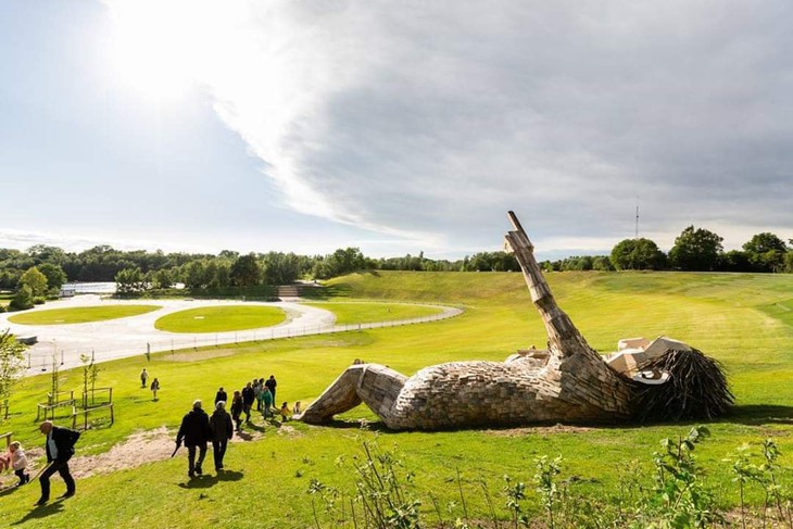 Những tấm gỗ pallet, kệ đựng trong siêu thị và những cành cây bị gãy đổ trong rừng đều được tận dụng để làm nên tác phẩm tại công viên này.