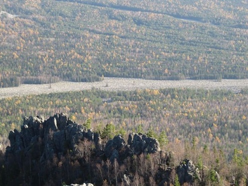 Đó là dòng sông đá kỳ vĩ tại công viên Taganai, miền nam rặng Ural nước Nga, bao gồm hàng ngàn tảng đá vắt ngang như một dòng sông qua rừng thông xanh ngát. Sông đá, còn gọi là dòng đá, có thể tìm thấy ở một số nơi trên thế giới- như núi Vitosha ở Bulgary, đảo Falkland... nhưng chẳng nơi đâu để lại ấn tượng mạnh mẽ cho du khách như sông đá ở Taganai.